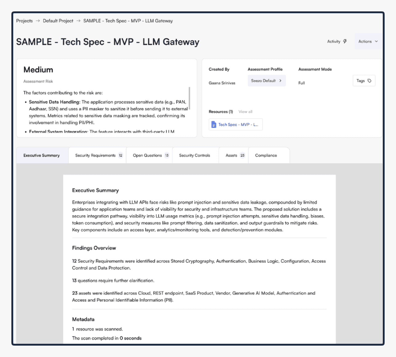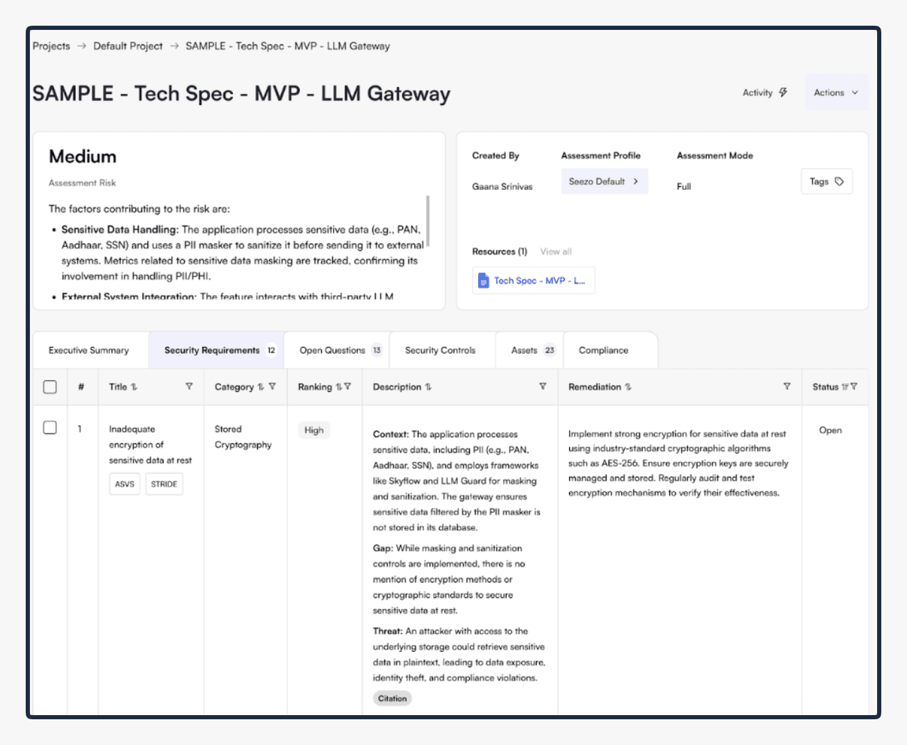 Here's how Seezo used to work: You'd give us a design document, an architecture spec, a system design, whatever your team produces before writing code. We'd analyze the document and generate security requirements: Is the database encrypted? Are the APIs authenticated? Are there input validation gaps?
